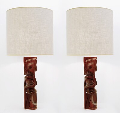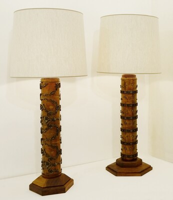 Pair of wooden table lamps
