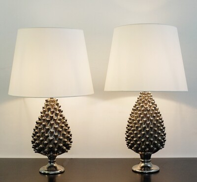 Paire of chrome table lamps