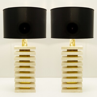 Contemporary Pair of Travertine Table Lamps