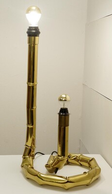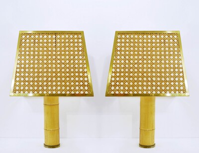 Contemporary Pair of Brass and Bamboo Table Lamp, Italy