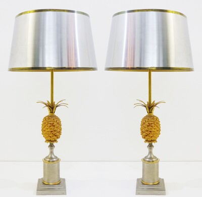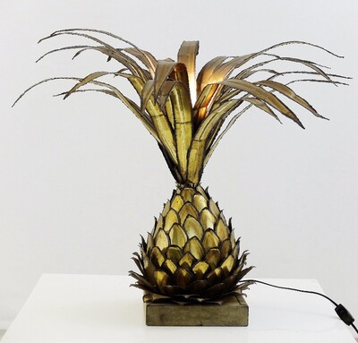 Brass & silver pineapple lamp by Boulanger, Belgium 1970s