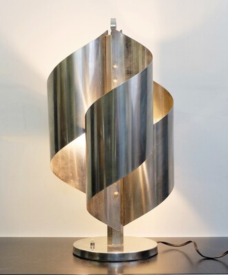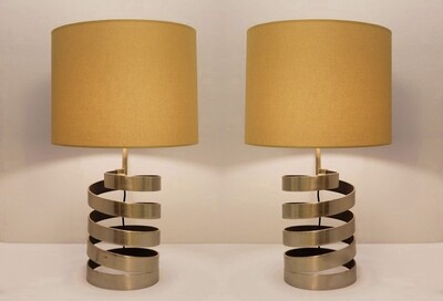 Pair of Table Lamps with helical base in brushed steel By Jacques Charpentier, France 1970s