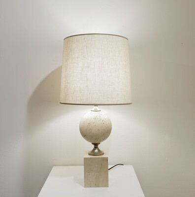 Pair of Contemporary Table Lamps, Travertine, Italy