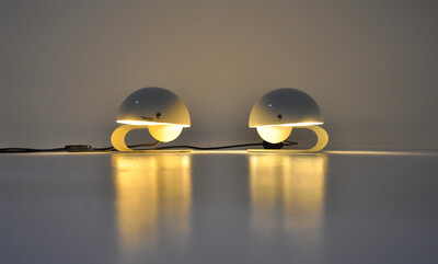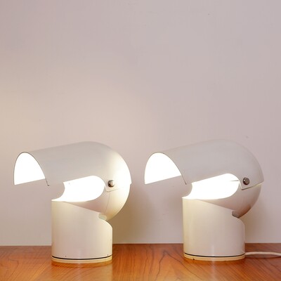 White pair of Bugia Table Lamps by Giuseppe Cormio for Guzzini, 1970s