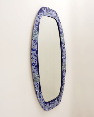 Mid-Century Blue Ceramic Wall Mirror by Fausto Melotti - Italy 1950s