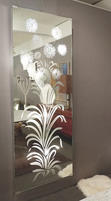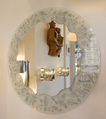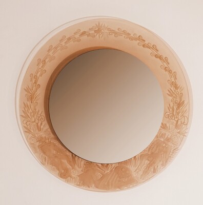 Engraved glass round mirror