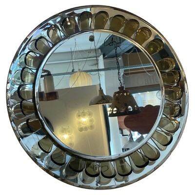 Mid-Century Round Glass Mirror, Italy, 1970s