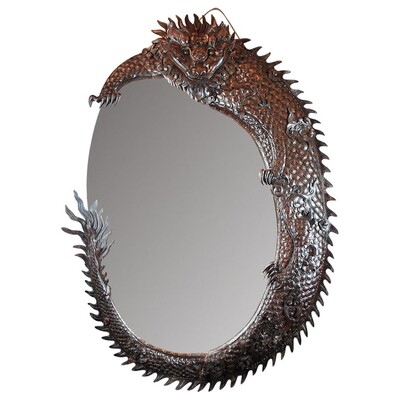 Large Dragon Mirror In Finely Carved Iron Wood, 19th