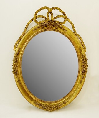 Louis XVI Style Carved Giltwood Oval Mirror with Ribbon - 19th C