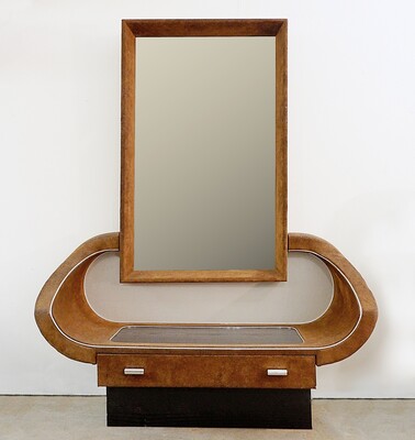 Mid-Century Modern Mirror and Console Set, Wood, Italy, 1960s