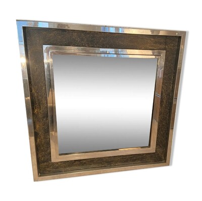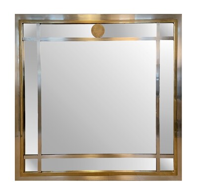 Belgo chrom square mirror golden and silver, Belgium, 1970s