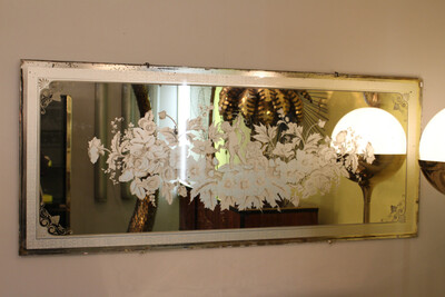 Large Vintage Mirror with silkscreen, from 1950s.