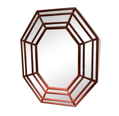 Wooden mirror with red tortoiseshell pattern