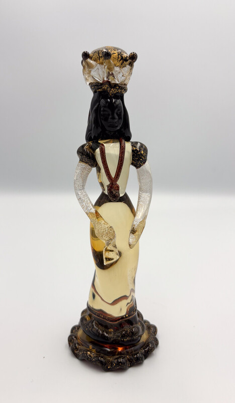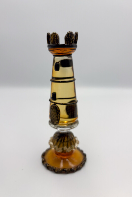 Rare Chess Set Composed of 32 Solid Amber Glass Pieces, finished in white or black pâte de verre, with gold leaf decoration, Pauly & C, Murano, 1930s