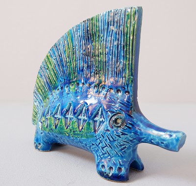 Bitossi ceramic Rimini Blu porcupine Figurine by Aldo Londi