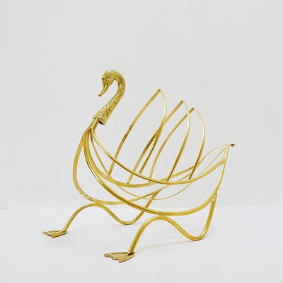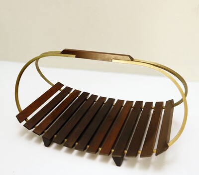 Wood & Brass Magazine Rack by Cesare Lacca, 1950s