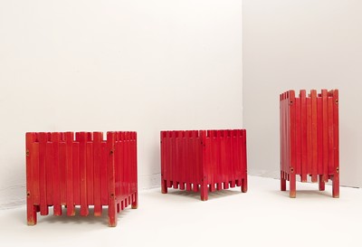 Ettore Sottsass Set of Three red Planters for Poltronova, 1961
