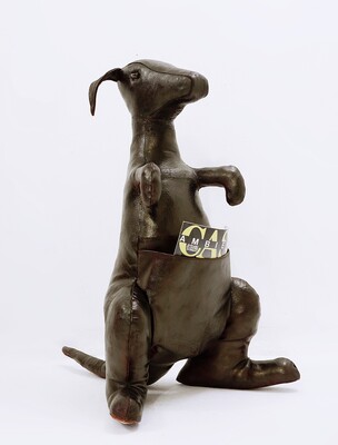 “snooty” leather camel footstool by Dimitri Omersa - ca.1965