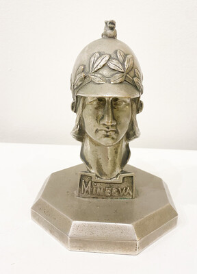 Minerva mascot in metal after Pierre de Soete, base added, 1930, Belgium