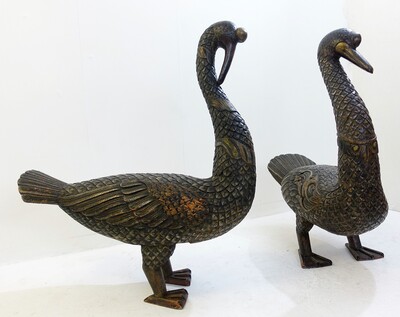 Ostrich sculpture made from an ostrich's egg with gilded metal