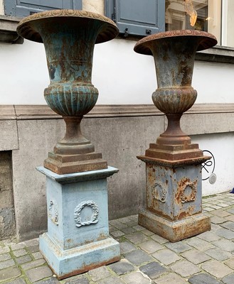 Pair of large Medici vases in patinated cast iron - Base + Vase: 157 cm