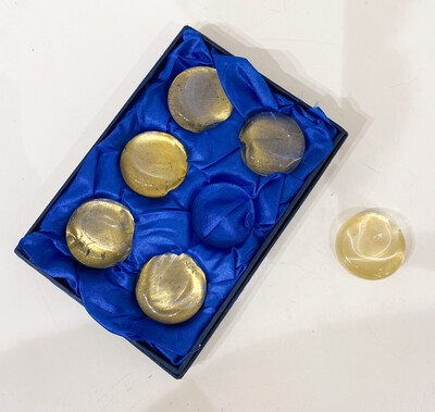 set of 6 glass pebbles cutlery holders in murano glass encrusted with gold powder