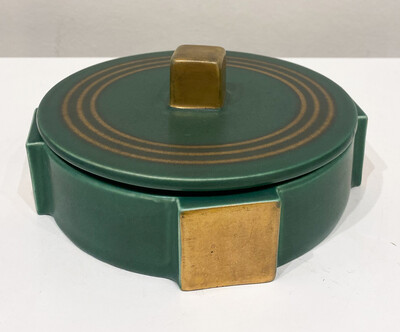 small green and gold enamel ceramic box, Villeroy et Boch, 1930