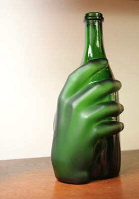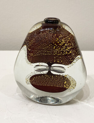 vintage italian murano glass perfume bottle, gold powder inlay, in the style of Roger Gandelman