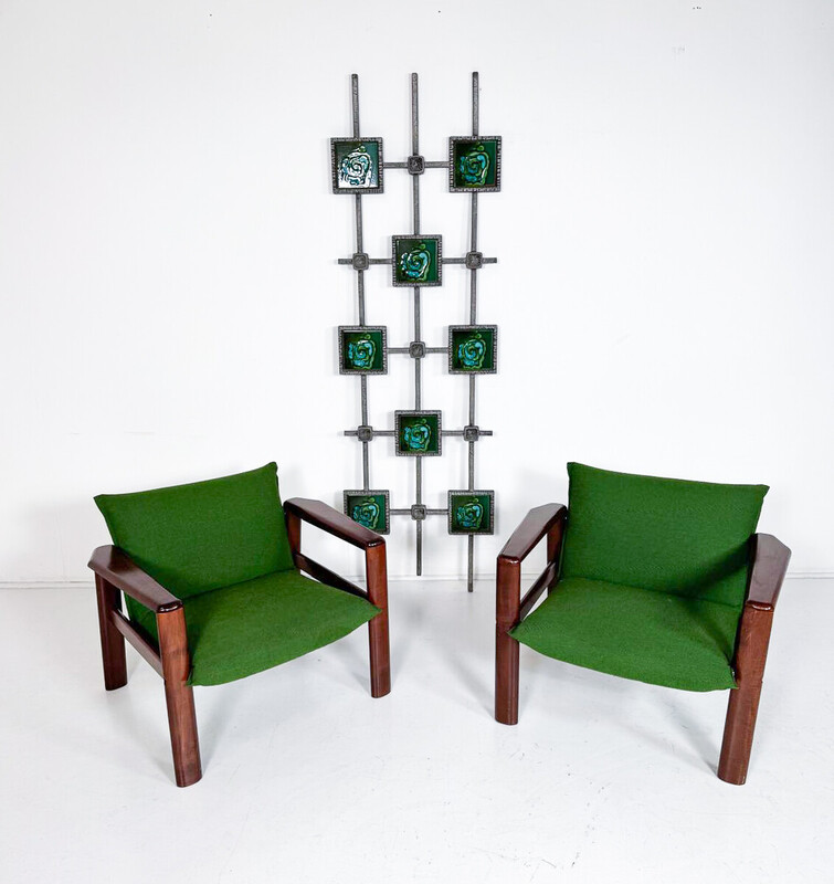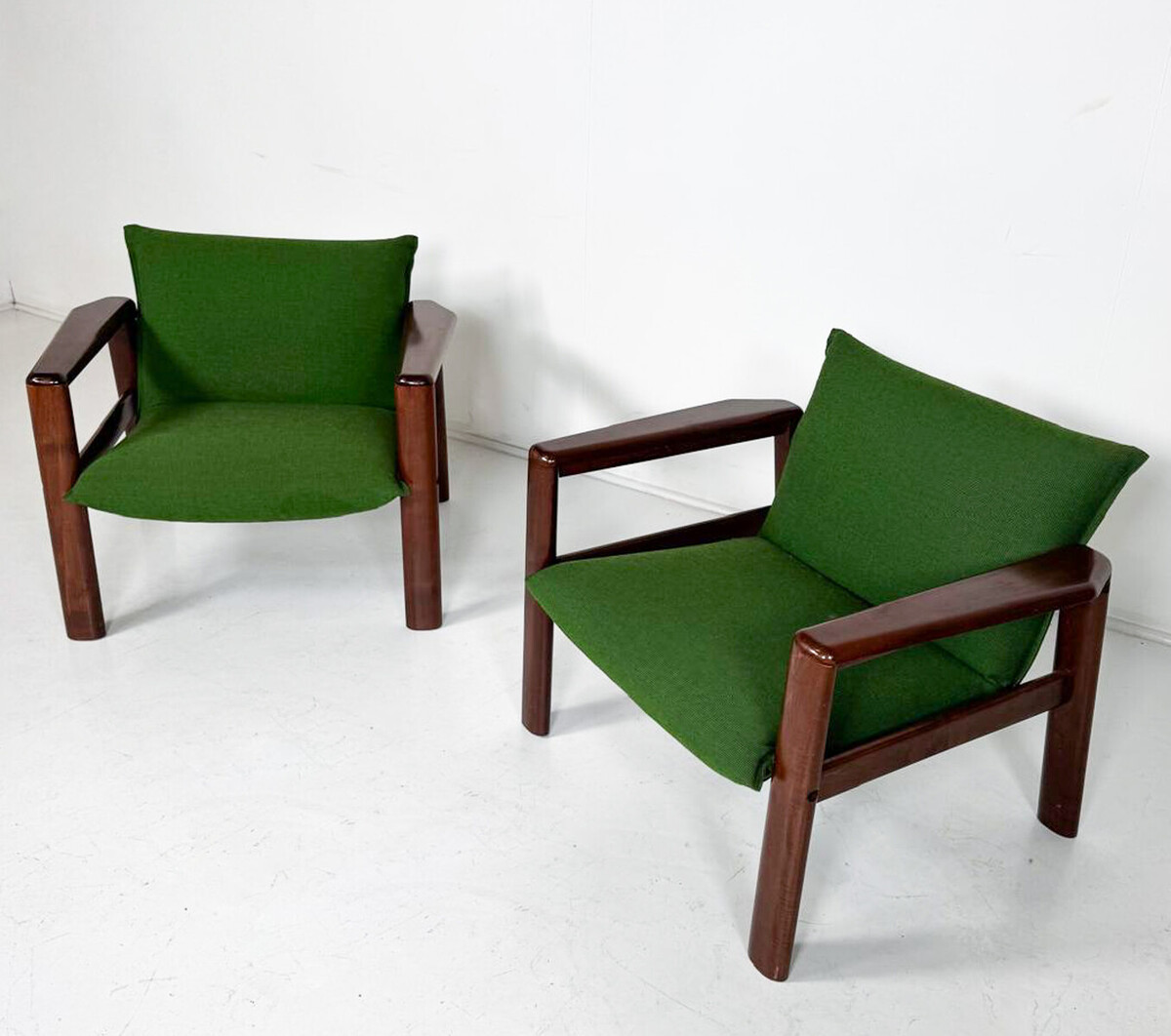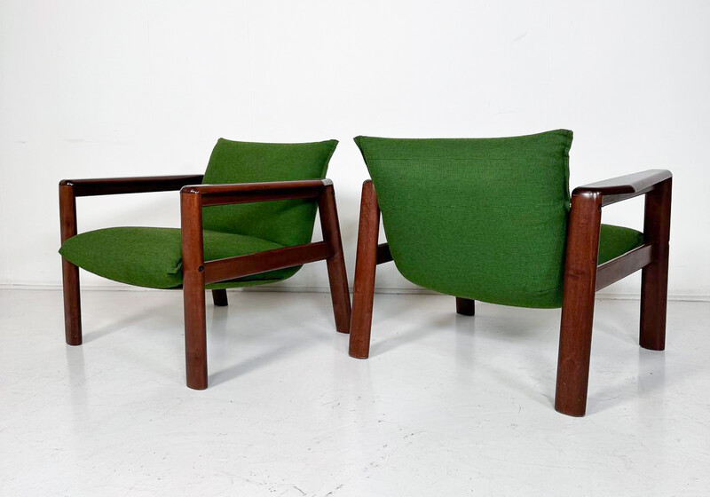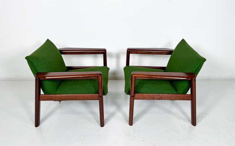 Mid-Century Modern Armchairs, Green Fabric and Wood, Italy, 1960s - 1 available