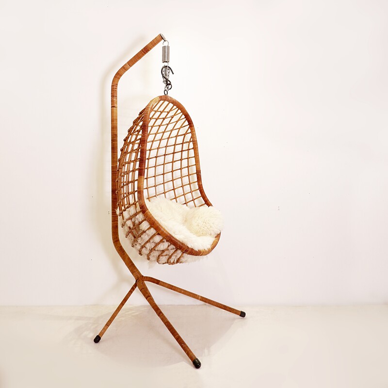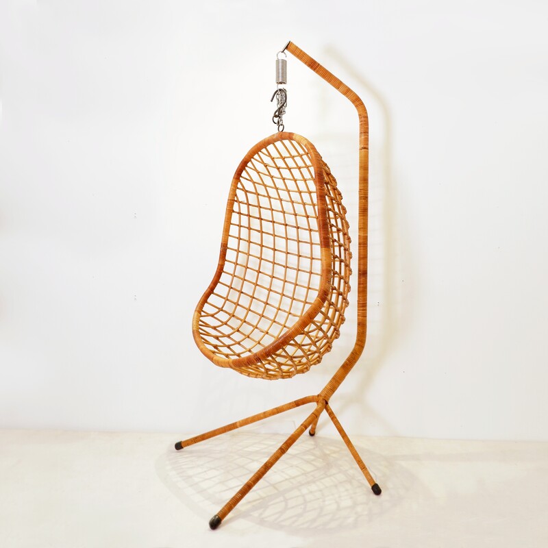 Vintage Bamboo and Rattan Hanging Chair with Steel and Rattan Frame