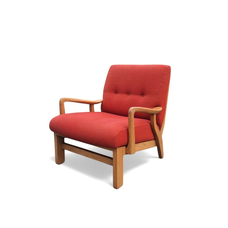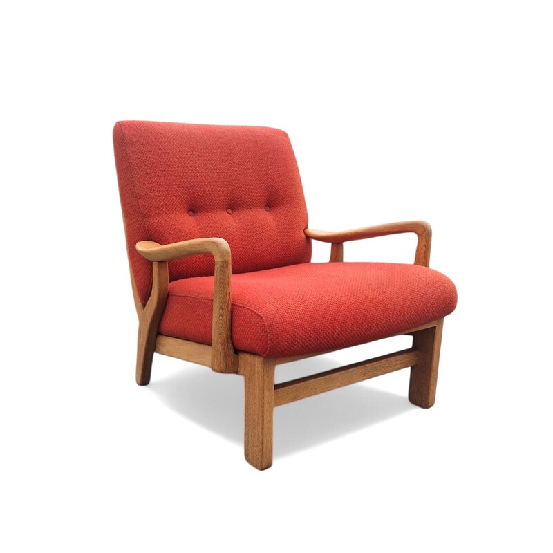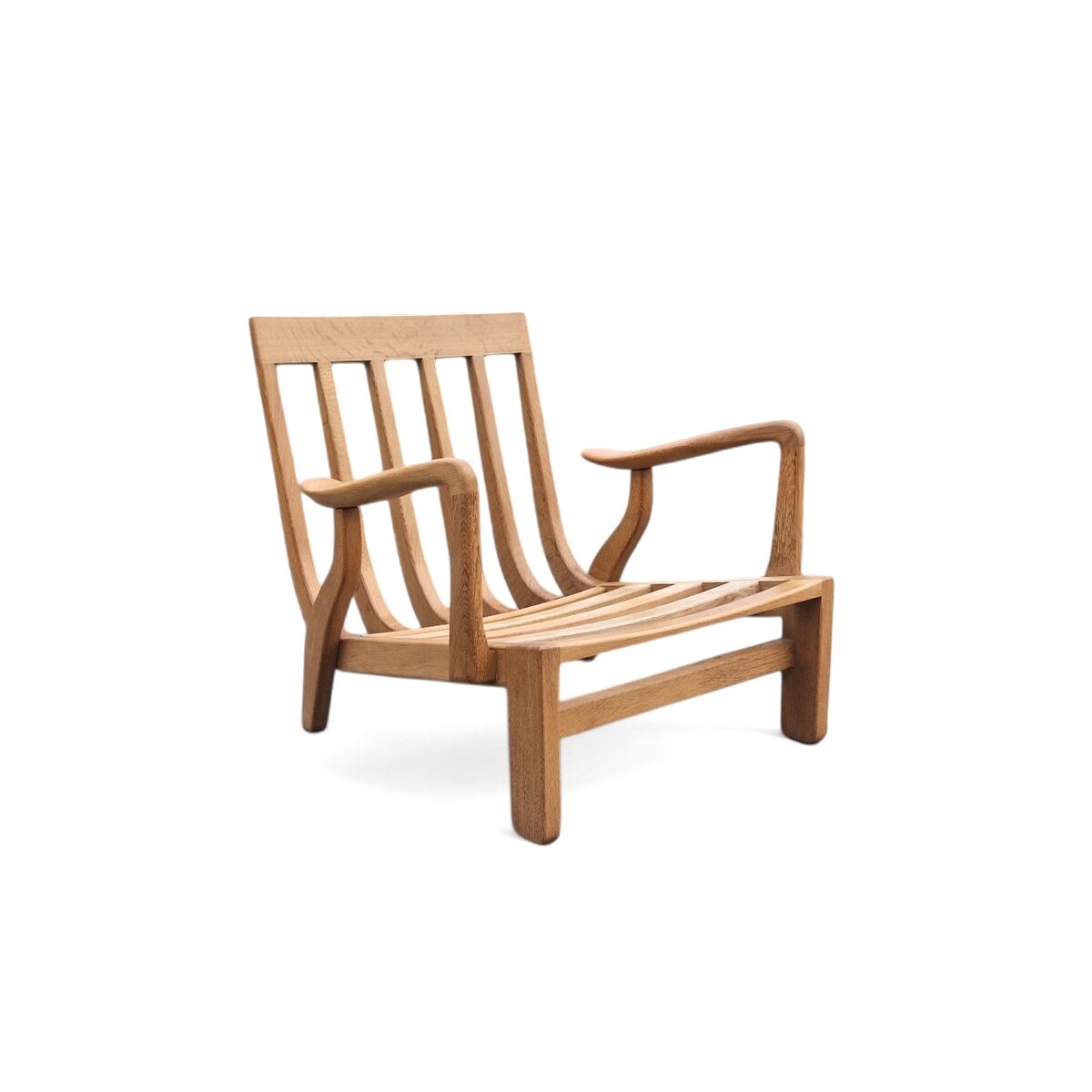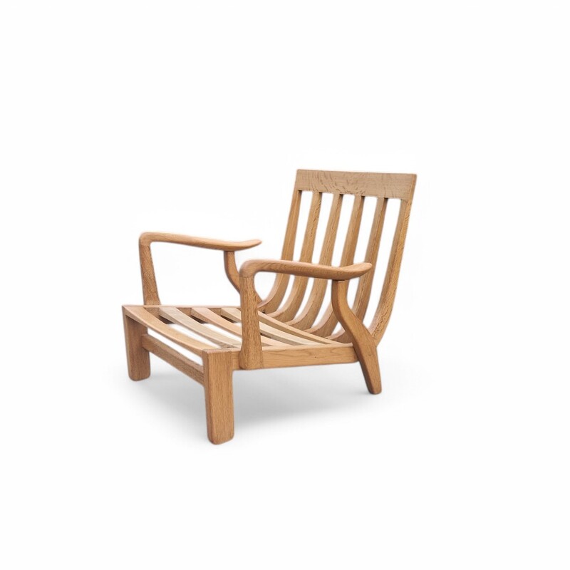Lounge Chair In Light Oak, Guillerme And Chambron, original fabric in perfect condition.