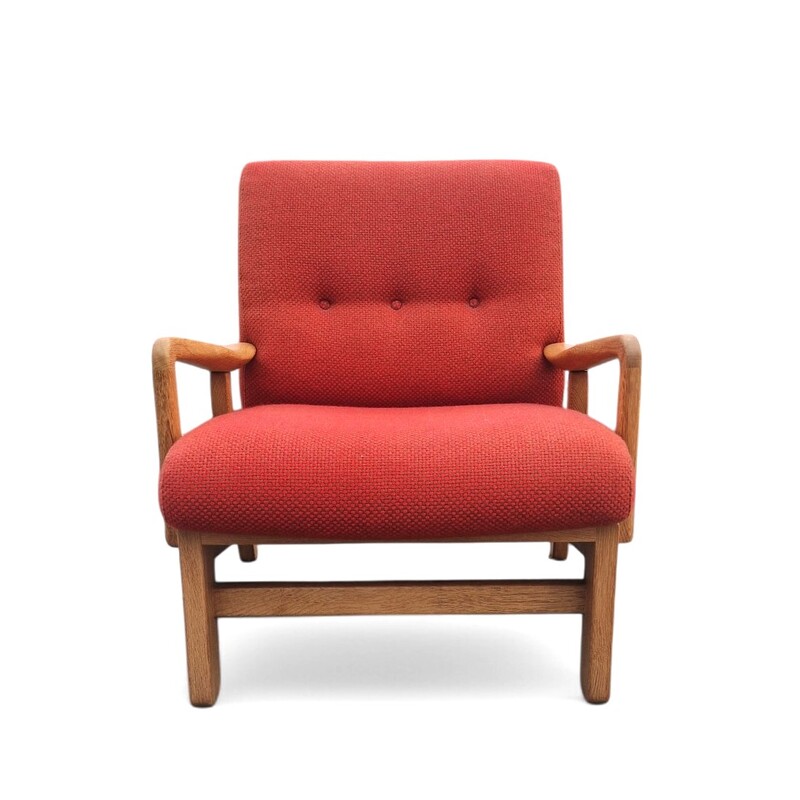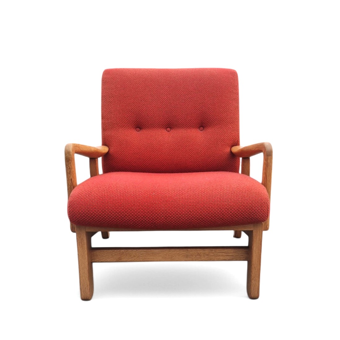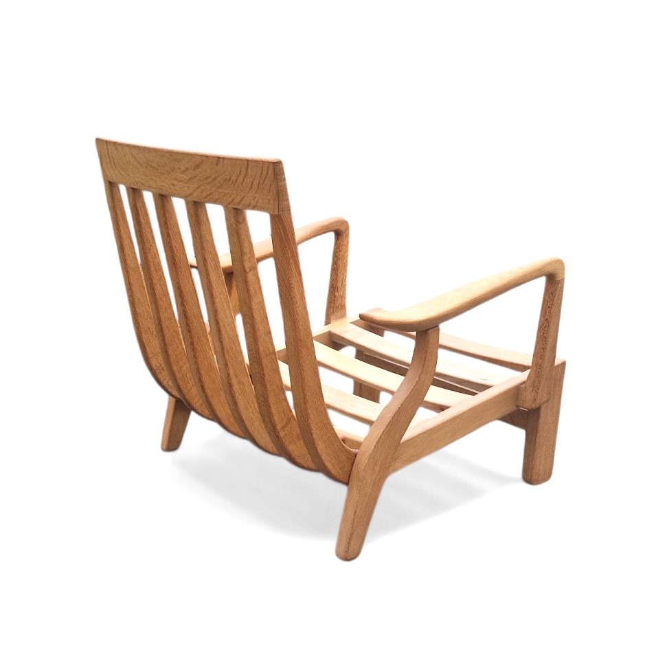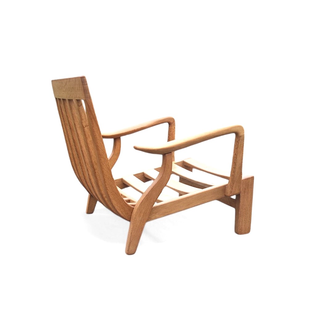 Lounge Chair In Light Oak, Guillerme And Chambron, original fabric in perfect condition.