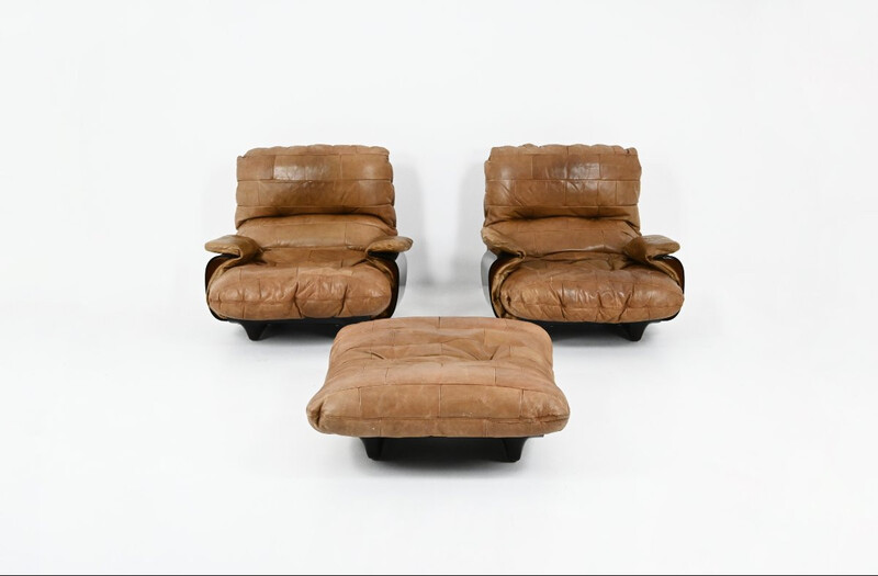 "Marsala" Lounge chairs & Ottoman by Michel Ducaroy for Ligne Roset, 1970s