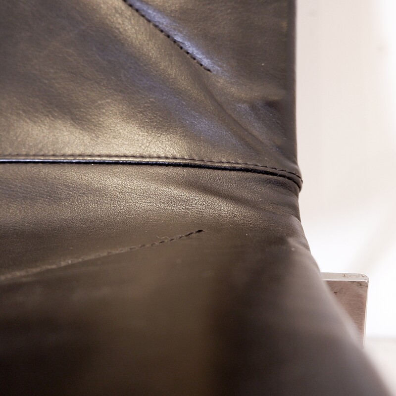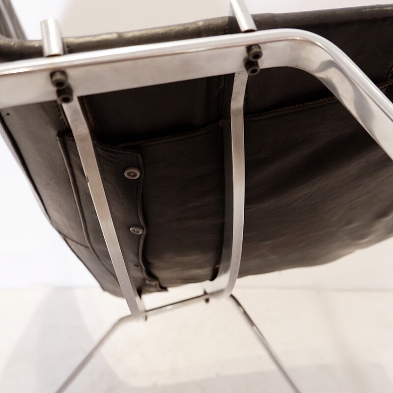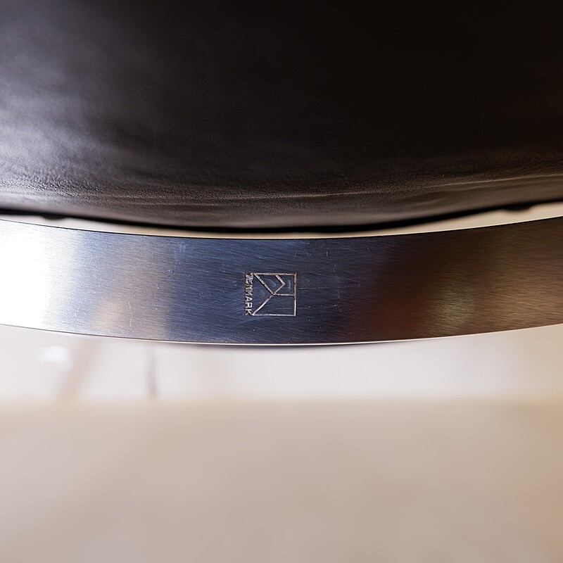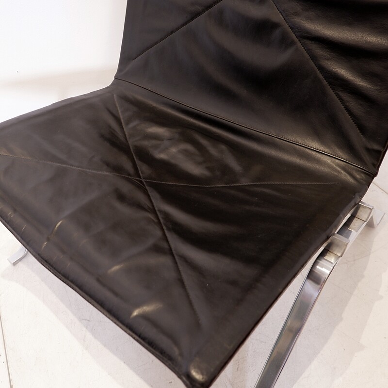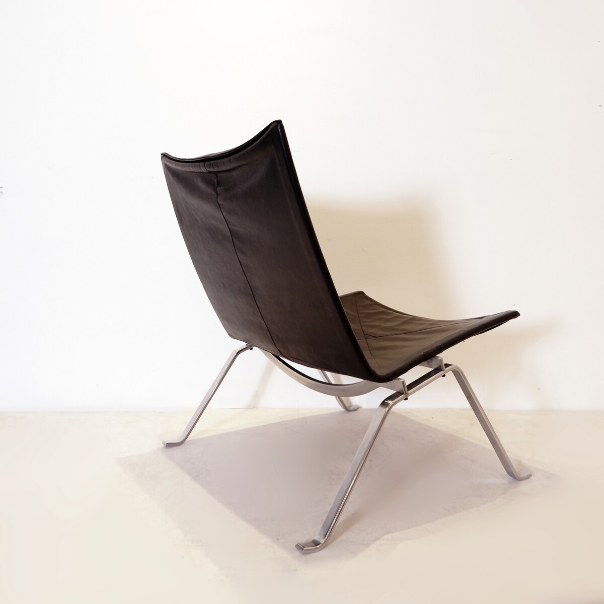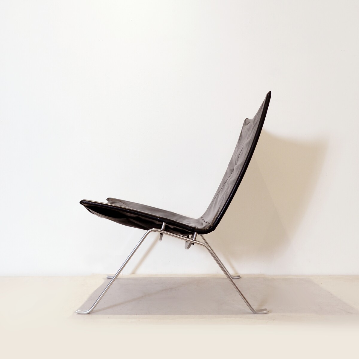 1st Edition PK22 Black Leather lounge chair by Poul Kjærholm for Fritz Hansen, 1975