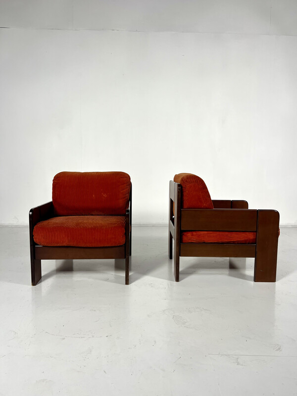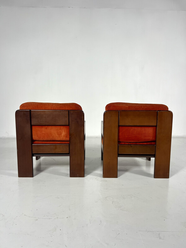Mid-Century Armchairs, Original Orange Velvet, Italy, 1970s