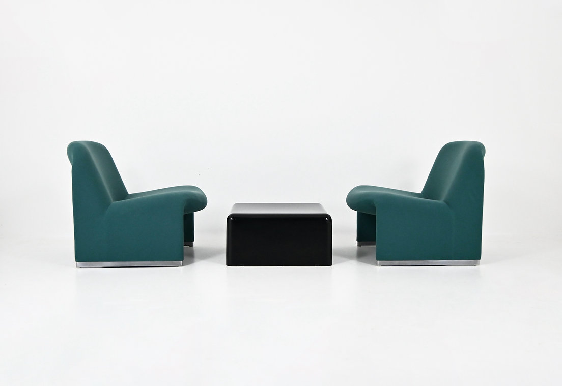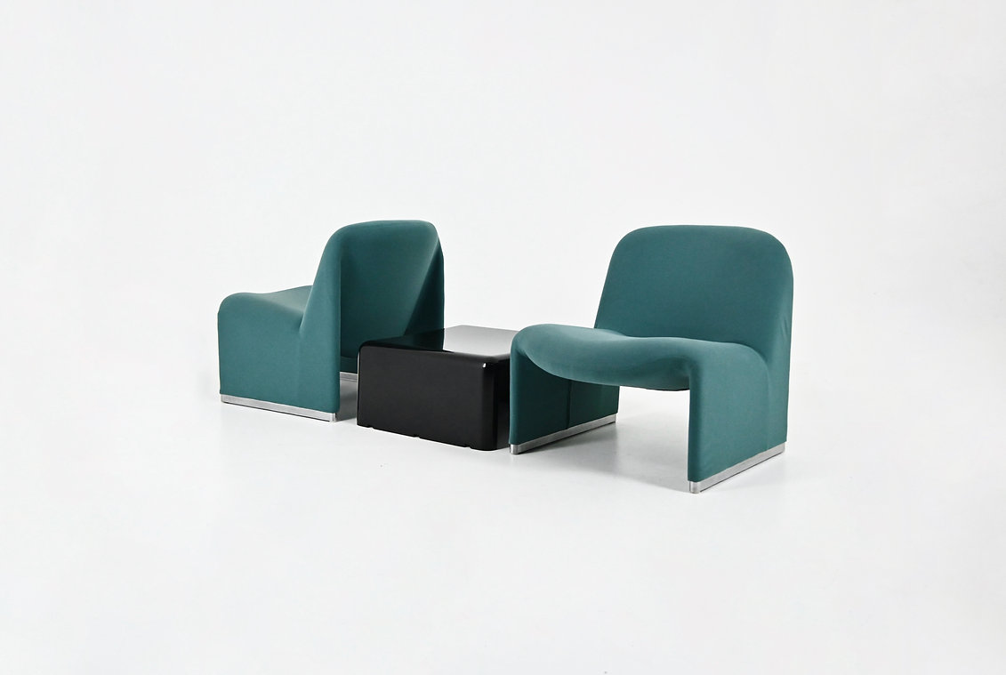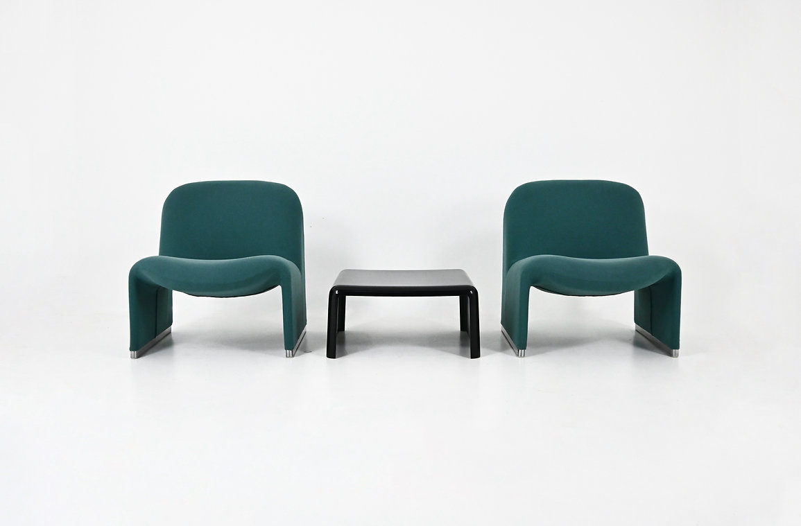 Alky Chairs + Table by Giancarlo Piretti for Anonima Castelli, 1970s, set of 3