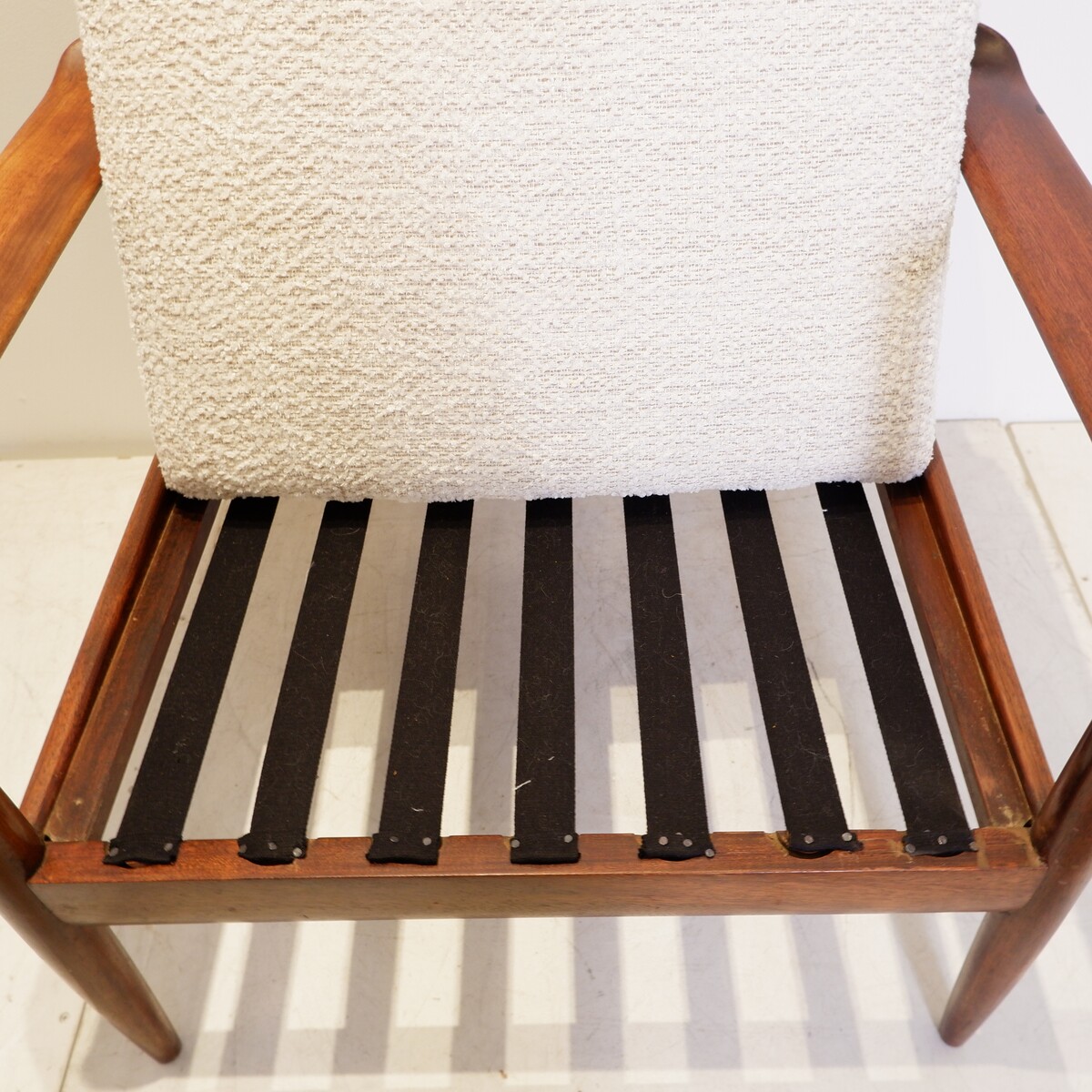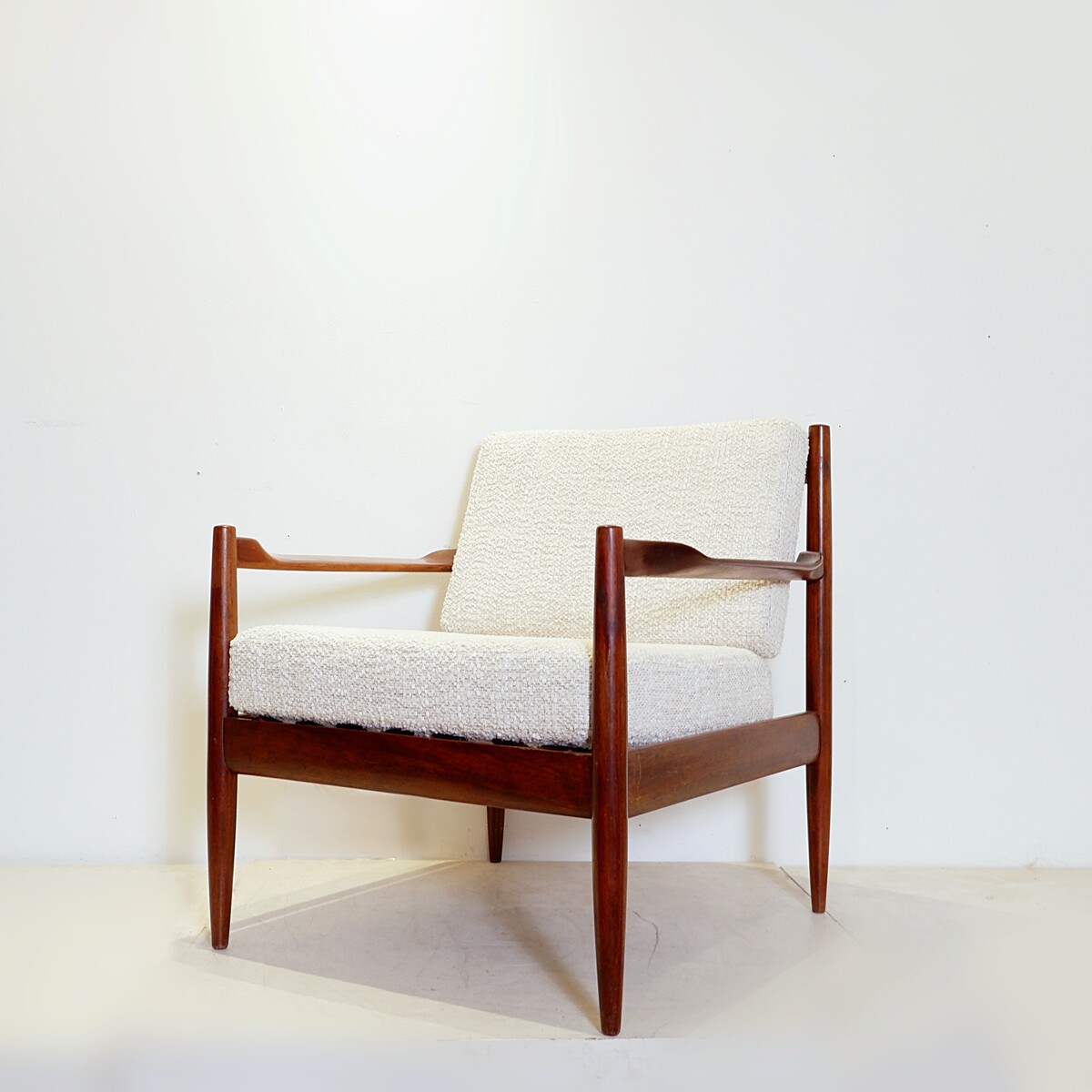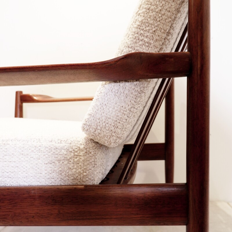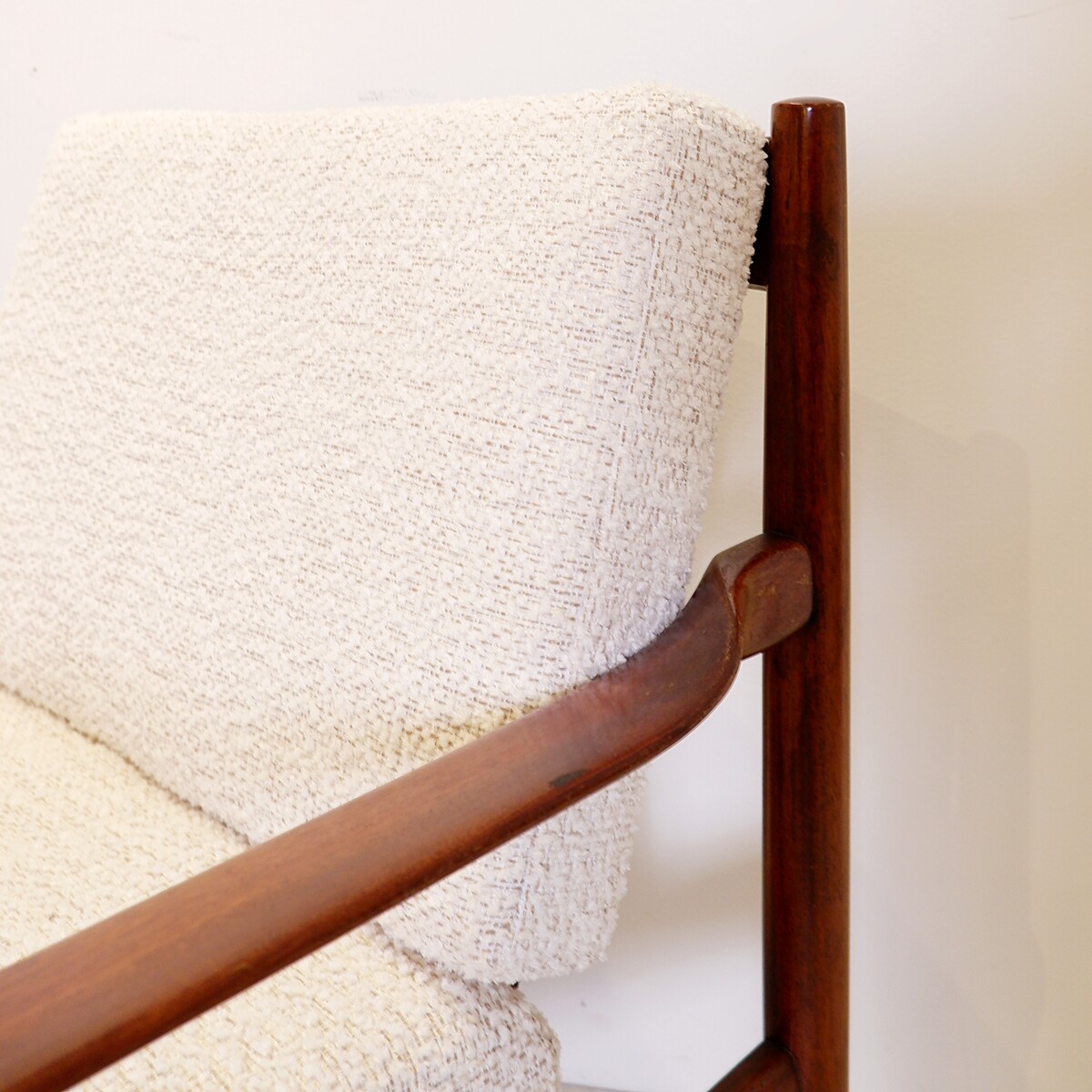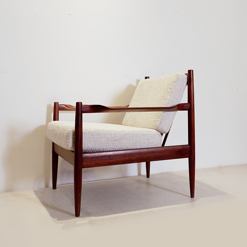 Vintage Scandinavian armchair from the 1960s - new bouclette fabric upholstery