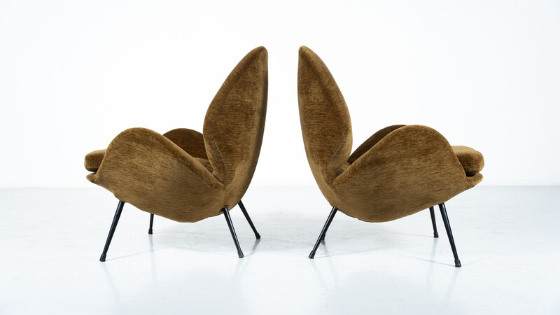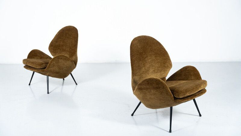 Pair of Armchairs, Italy, 1950s - New Velvet Upholstey