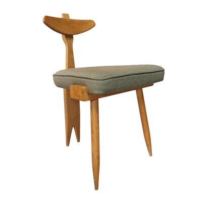 Rare tripod chair in light oak, Guillerme and Chambron for "Votre Maison" publisher, France, 1960s/1970s