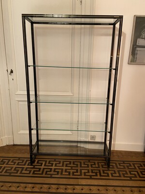Pedestal Table in Bamboo Metal with Black Glass Top