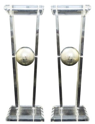 Pair of chrome and brass lamps