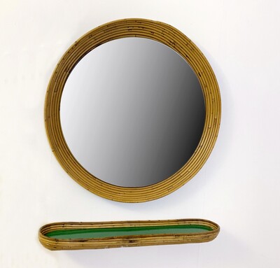 Large Mirror with Wooden Grid, Italy, 1960s