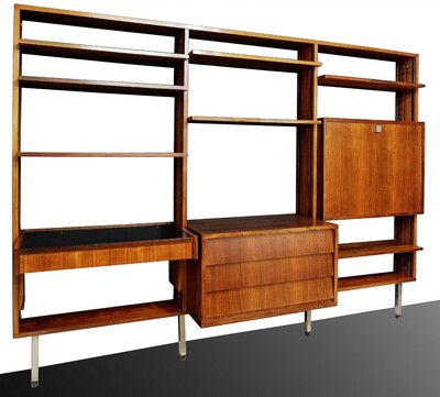 Micentury wall unit in teck by Ernst Dieter Hilker for Omnia , Germany, 1960's