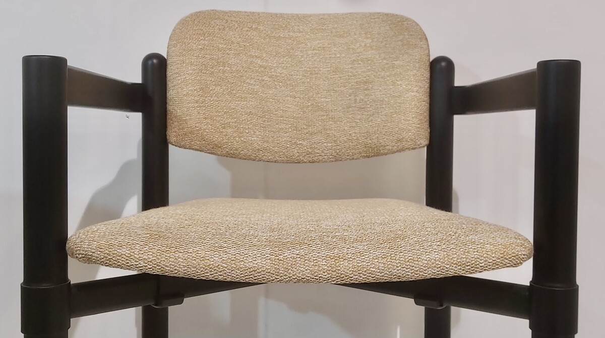 in Beech wood and matt black lacquered metal frame New padding and new fabrics
