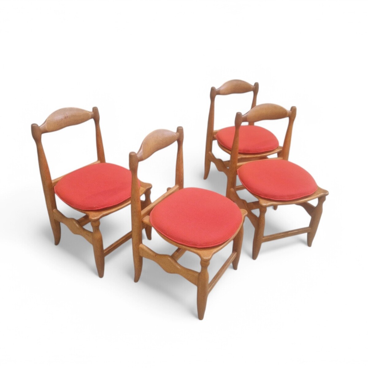 Set Of 4 Solid Oak Chairs, Guillerme And Chambron
