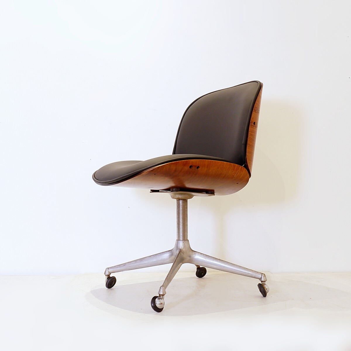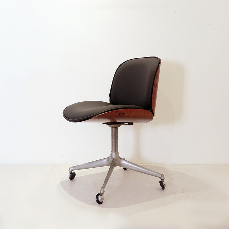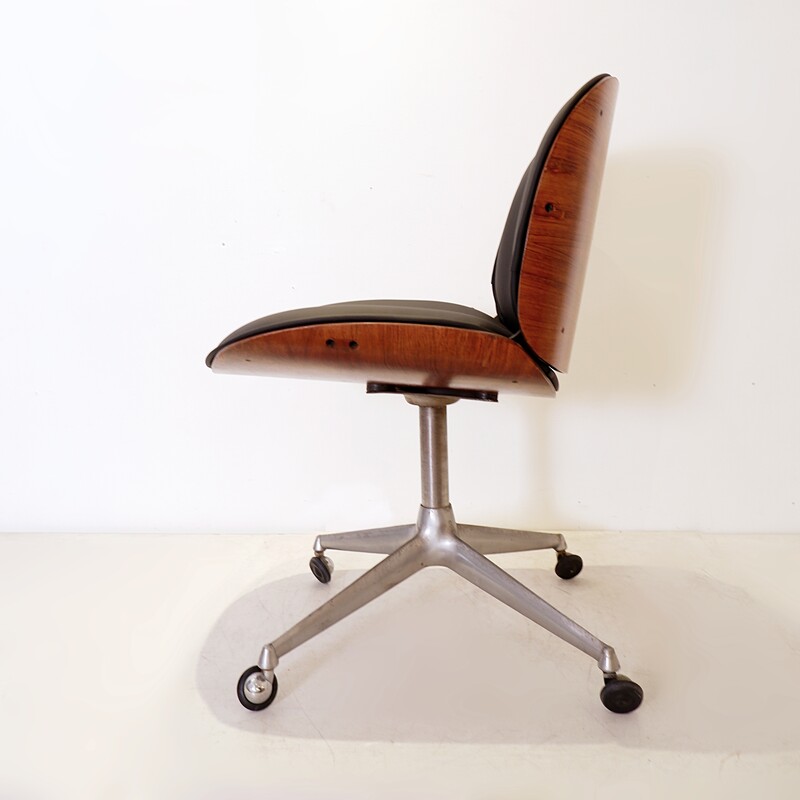 Ico Parisi office chair for MIM, Italy, 1960s - New black leather upholstery