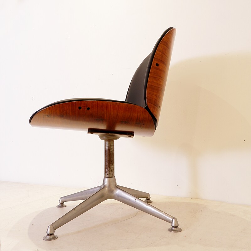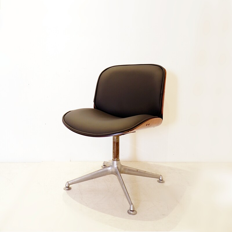 Ico Parisi office chair for MIM, Italy, 1960s - New black leather upholstery