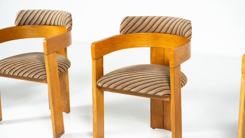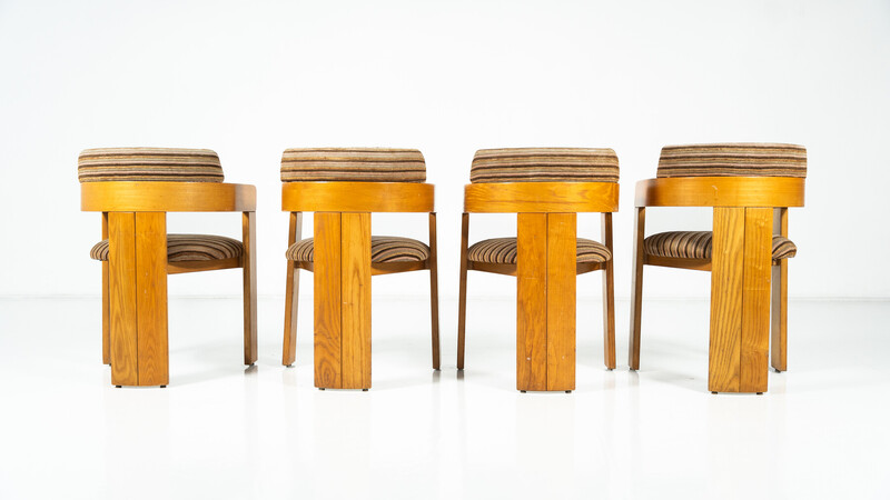 Set of 4 Armchairs, Wood and Fabric, Italy, 1970s