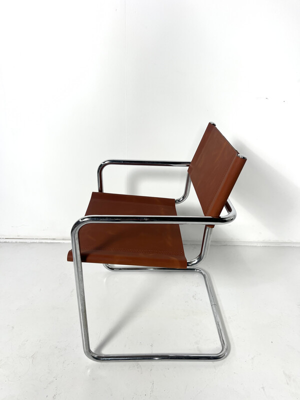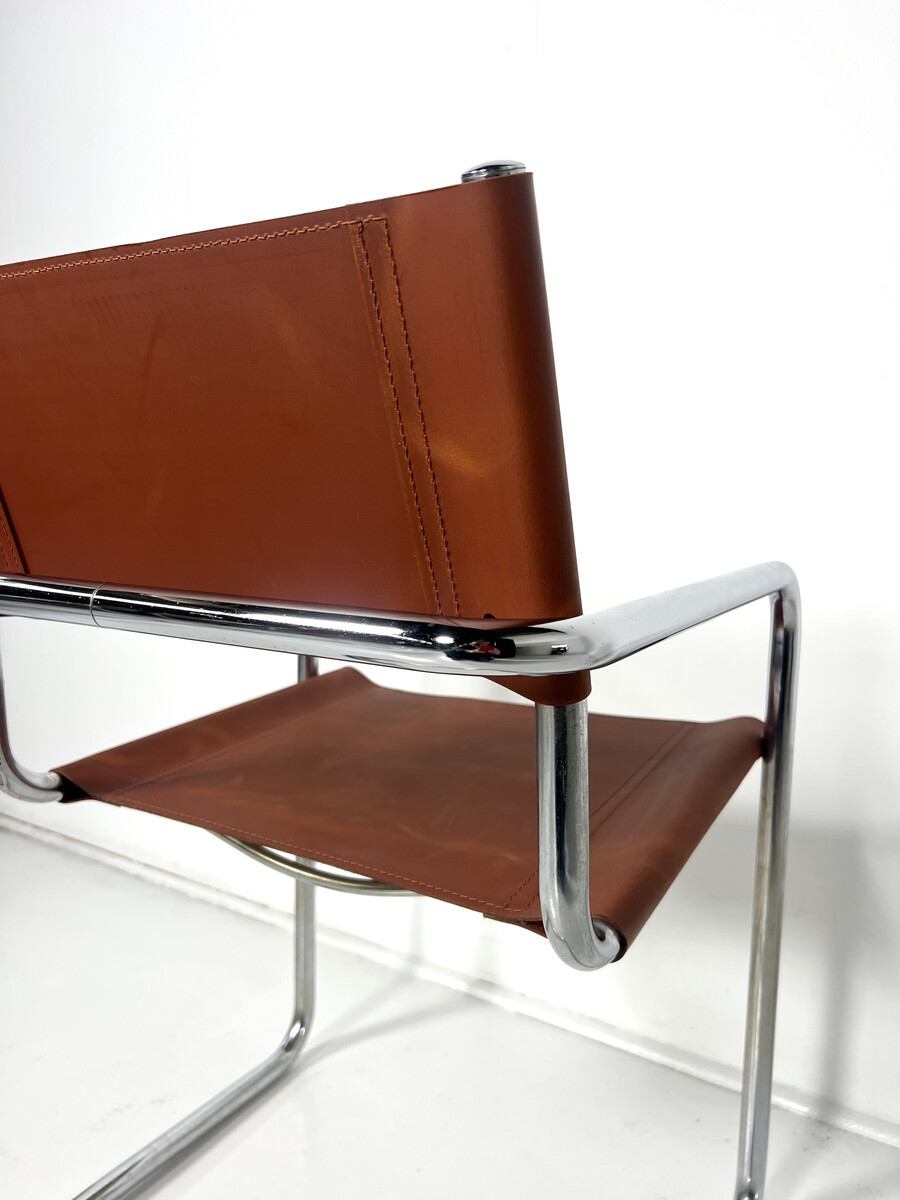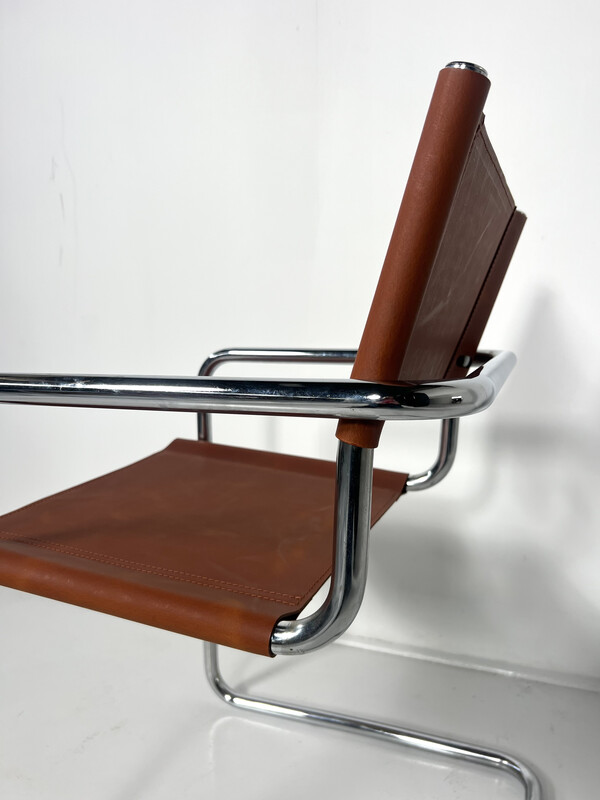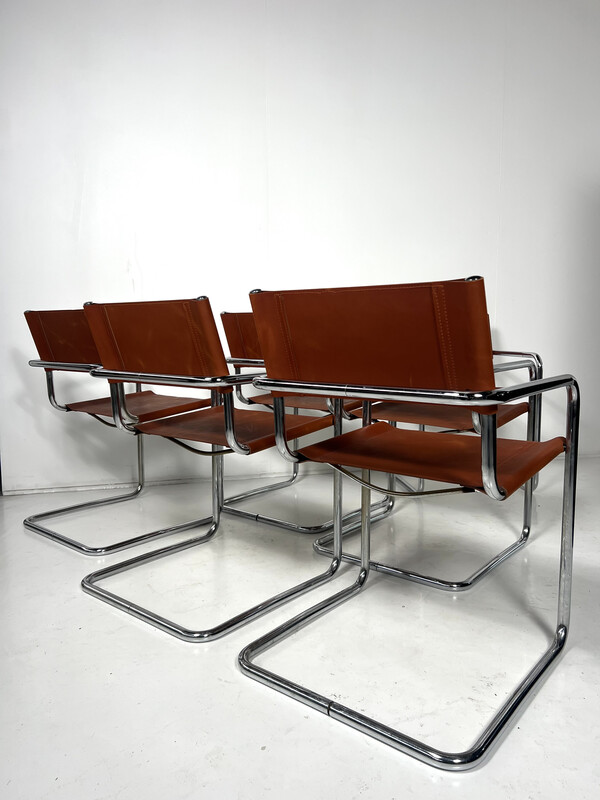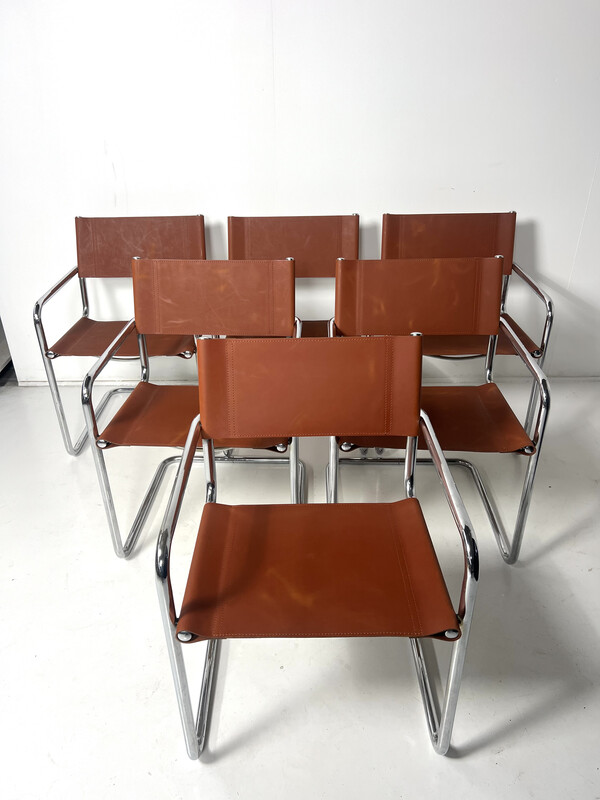 Mid-Century Modern Set of 6 Armchairs, Chrome and Leather,