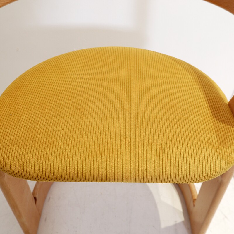 Vintage curved solid wood side chair - New yellow corduroy upholstery